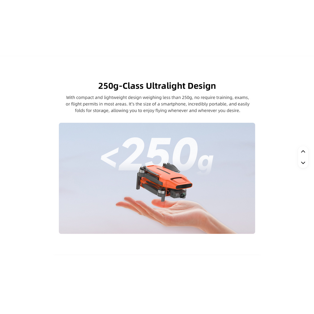1. Ultra-Lightweight Design (250g Class): Weighs under 250 grams, exempting it from mandatory registration or permits in most regions. Features a foldable, pocket-sized design for ultimate portability.